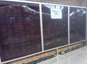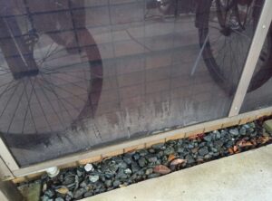 駐輪場のサイドパネルには、泥はねや砂埃、蜘蛛の巣などが付着しやすく、