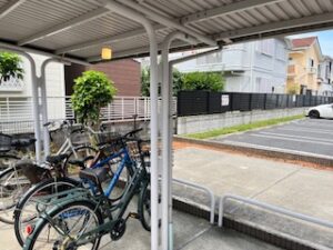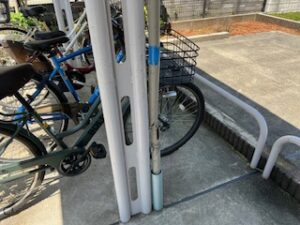 駐輪場の屋根に溜まった雨水を、縦樋を経由して排水する役割があります。