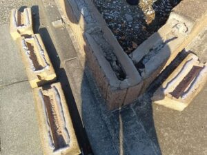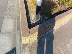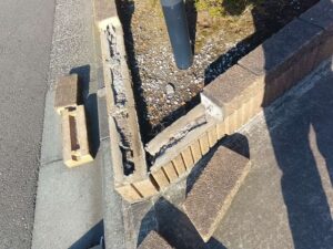 上の写真のように、経年により花壇の笠木ブロックが外れておりました。