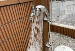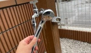 ↑シャワーの先端部分が落下の衝撃で中心部分が取れてしまっており、水が正しく排出されない状態でした。